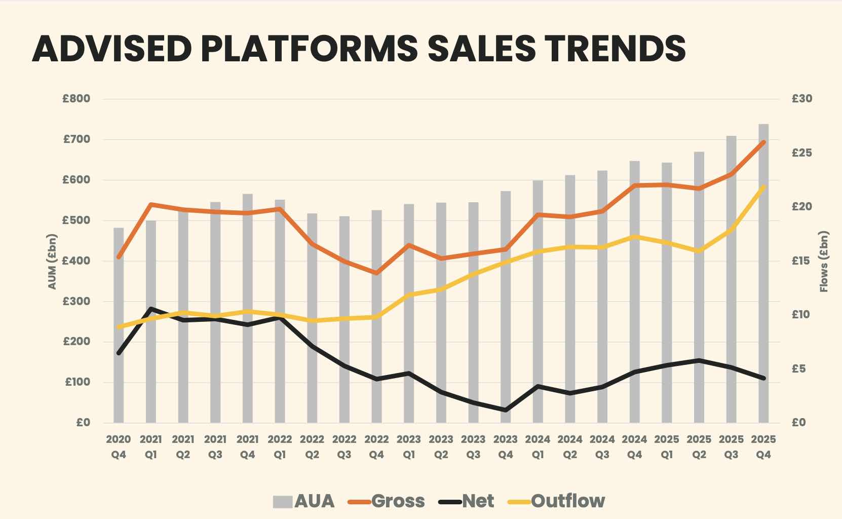 There were record gross sales and outflows for advised platforms in the last quarter of 2025.